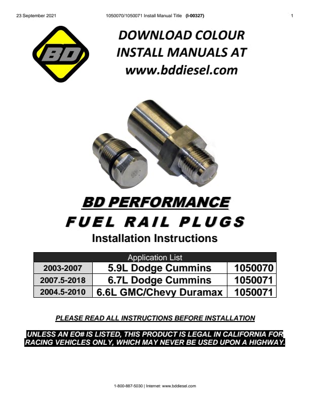 BD 5.9L Cummins Fuel Rail Plug Dodge 2003-2007