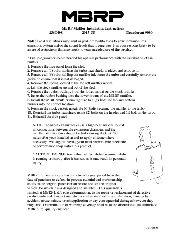 Performance And Sound For The Enthusiast Dial up the performance of your snowmobile and enjoy a moderate, deeper exhaust note with an MBRP Trail Profile muffler. Save weight, gain performance and sound - what’s not to love?