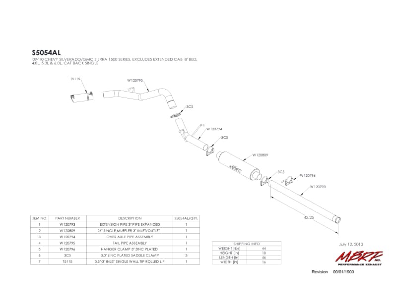 3in. Cat-Back. Single Side Exit. Aluminized Steel.