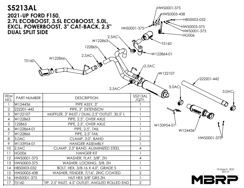 3in. Cat-Back. 2.5in Dual Split Side Exit. Aluminized Steel.