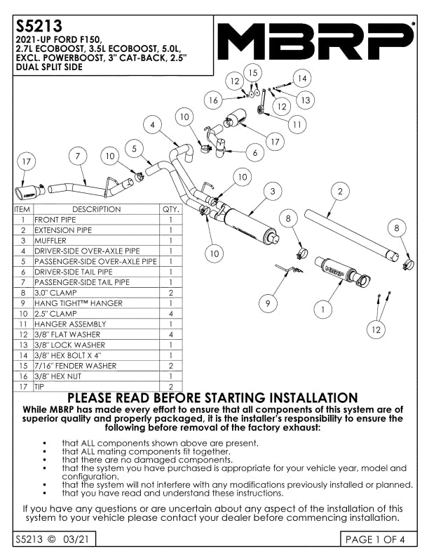 Heavy-gauge Aluminized Steel tubing helps to resist dings and dents caused by debris under your vehicle. This material can be a great choice for you if you live in a dry climate that doesn’t see much precipitation, or if you’re looking for great sound on a budget. All of the tubing is mandrel bent for maximum exhaust flow. Mandrel bending ensures no rippling in the bends. The end result is that it gives you more fresh air inside your engine’s cylinders, allowing it to produce more power and improve vehicle performance and longevity. MBRP, Stand out from the crowd with a performance exhaust system that sounds great.