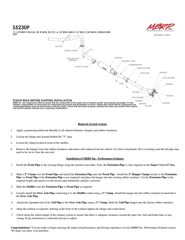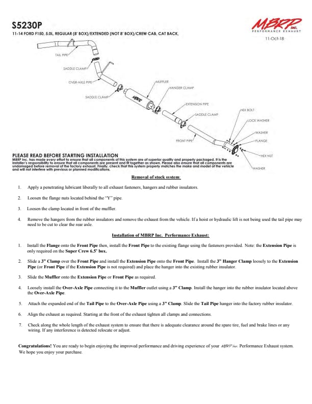 THE BEST BANG FOR YOUR BUCK - ARMOR LITE Series exhaust systems are a value option with the same fitment, performance and sound as the premium products from MBRP. Heavy-gauge Aluminized Steel tubing helps to resist dings and dents caused by debris under your vehicle. This material can be a great choice for you if you live in a dry climate that doesn’t see much precipitation, or if you’re looking for great sound on a budget. All of the tubing is mandrel bent for maximum exhaust flow. Mandrel bending ensures no rippling in the bends. The end result is that it gives you more fresh air inside your engine’s cylinders, allowing it to produce more power and improve vehicle performance and longevity. Part numbers ending in P and PLM carry a 1-year warranty. MBRP, Stand out from the crowd with a performance exhaust system that sounds great.
