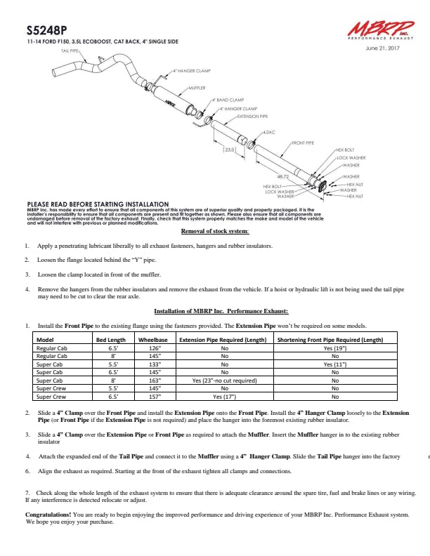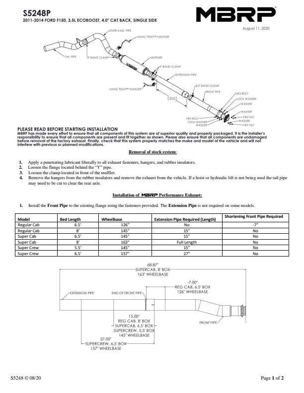 THE BEST BANG FOR YOUR BUCK - ARMOR LITE Series exhaust systems are a value option with the same fitment, performance and sound as the premium products from MBRP. Heavy-gauge Aluminized Steel tubing helps to resist dings and dents caused by debris under your vehicle. This material can be a great choice for you if you live in a dry climate that doesn’t see much precipitation, or if you’re looking for great sound on a budget. All of the tubing is mandrel bent for maximum exhaust flow. Mandrel bending ensures no rippling in the bends. The end result is that it gives you more fresh air inside your engine’s cylinders, allowing it to produce more power and improve vehicle performance and longevity. Part numbers ending in P and PLM carry a 1-year warranty. MBRP, Stand out from the crowd with a performance exhaust system that sounds great.