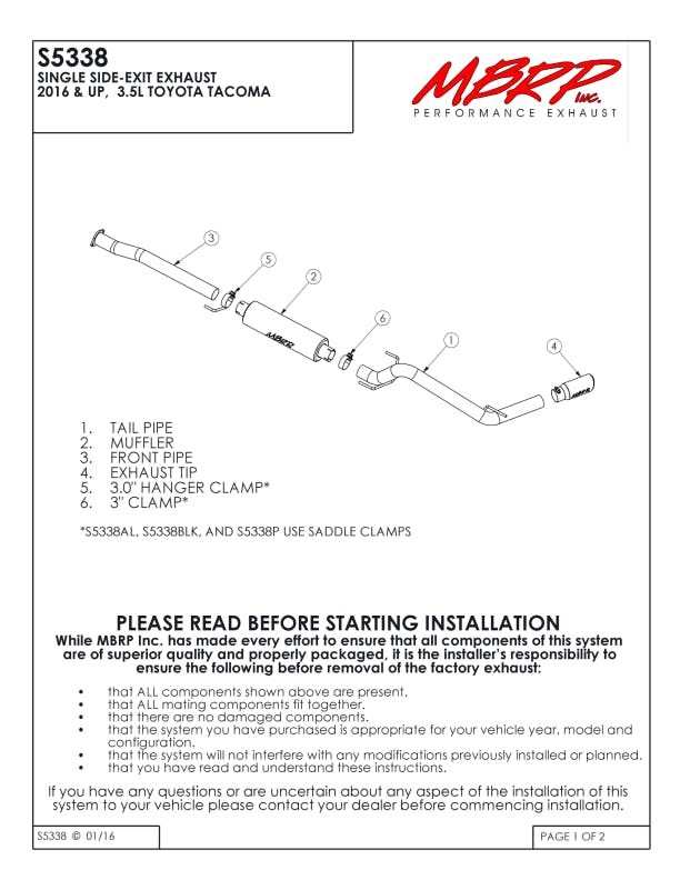 Manufactured using heavy-gauge Aluminized Steel tubing throughout the whole system, everything but the tailpipe and tip are left as mill-finish steel for better resistance of damage under your vehicle. This material can be a great choice for you if you live in a dry climate that doesn’t see much precipitation. All of the tubing is mandrel bent for maximum exhaust flow. Mandrel bending ensures no rippling in the bends. The end result is that it gives you more fresh air inside your engine’s cylinders, allowing it to produce more power and improve vehicle performance and longevity. The black powder coating features a 1-year warranty against factory defects, and the remaining parts feature an industry leading 3-year warranty. MBRP, Stand out from the crowd with a performance exhaust system that sounds great.
