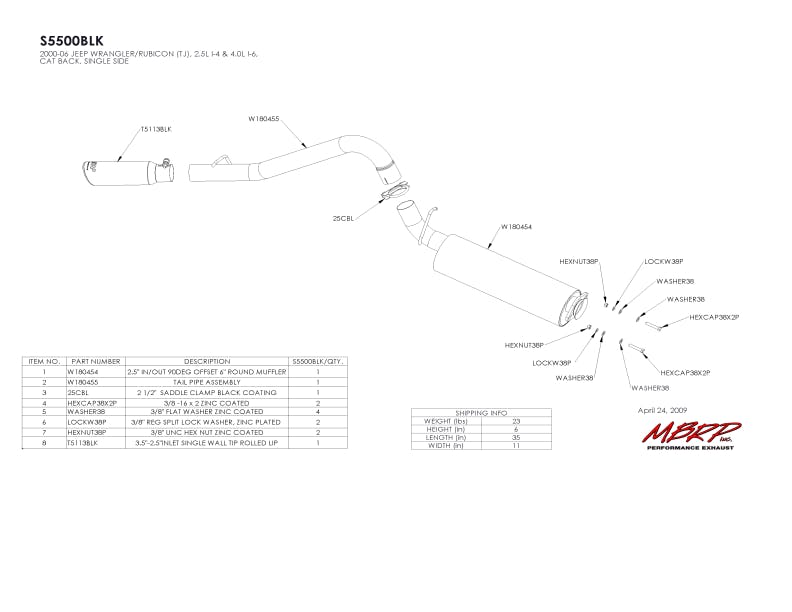 - Black Coated. Fully Sealed Seams for Rust Resistance. MBRP Signature Styling and Sound.