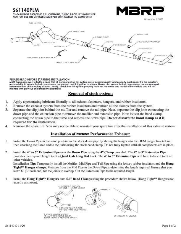 Heavy-gauge Aluminized Steel tubing helps to resist dings and dents caused by debris under your vehicle. This material can be a great choice for you if you live in a dry climate that doesn’t see much precipitation, or if you’re looking for great sound on a budget. All of the tubing is mandrel bent for maximum exhaust flow. Mandrel bending ensures no rippling in the bends. The end result is that it gives you more fresh air inside your engine’s cylinders, allowing it to produce more power and improve vehicle performance and longevity. Part numbers ending in P and PLM carry a 1-year warranty. MBRP, Stand out from the crowd with a performance exhaust system that sounds great.