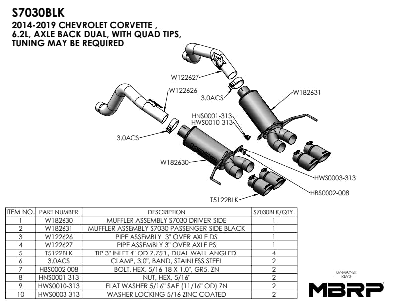 Manufactured using heavy-gauge Aluminized Steel tubing throughout the whole system, everything but the tailpipe and tip are left as mill-finish steel for better resistance of damage under your vehicle. This material can be a great choice for you if you live in a dry climate that doesn’t see much precipitation. All of the tubing is mandrel bent for maximum exhaust flow. Mandrel bending ensures no rippling in the bends. The end result is that it gives you more fresh air inside your engine’s cylinders, allowing it to produce more power and improve vehicle performance and longevity. The black powder coating features a 1-year warranty against factory defects, and the remaining parts feature an industry leading 3-year warranty. MBRP, Stand out from the crowd with a performance exhaust system that sounds great.